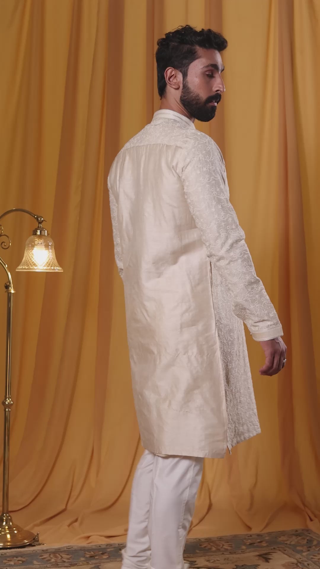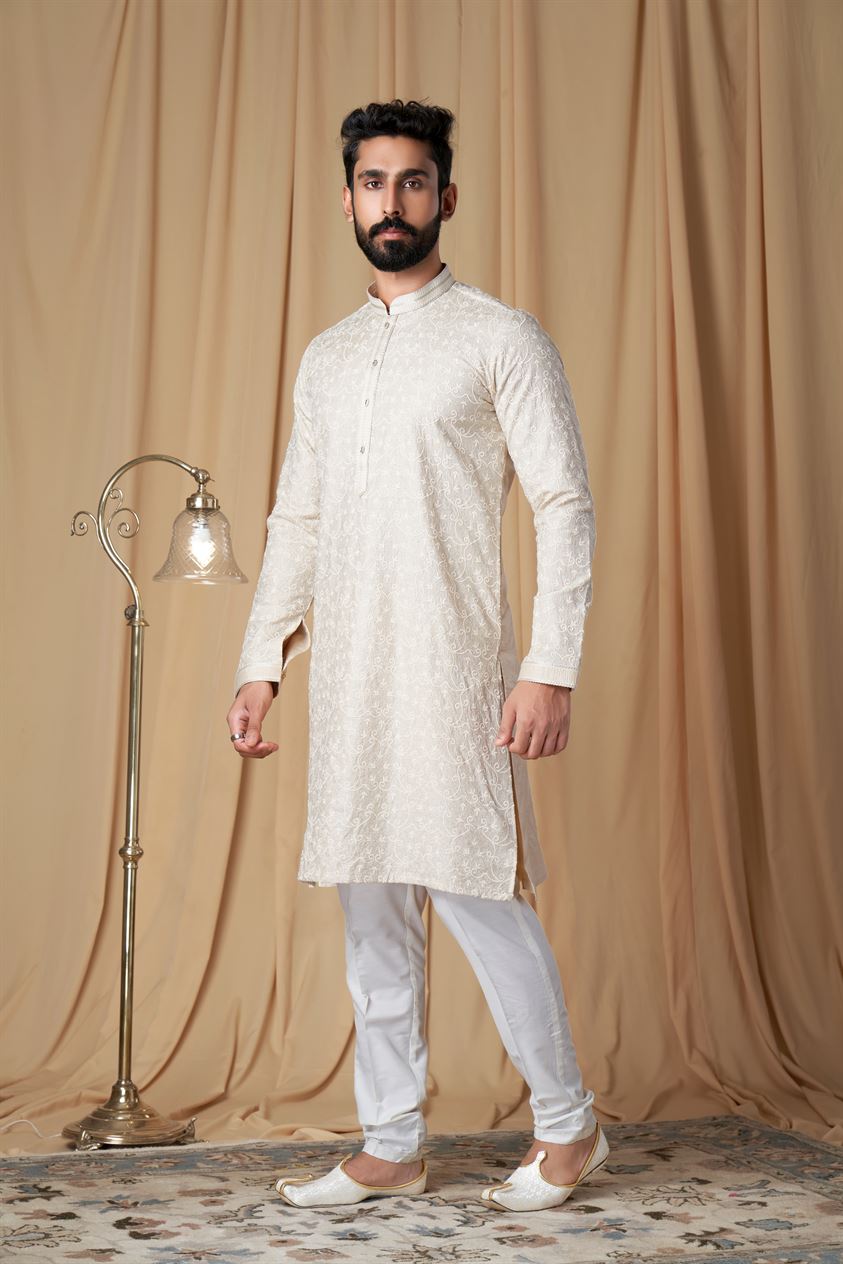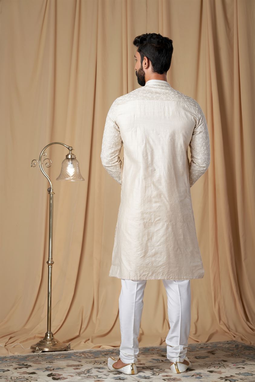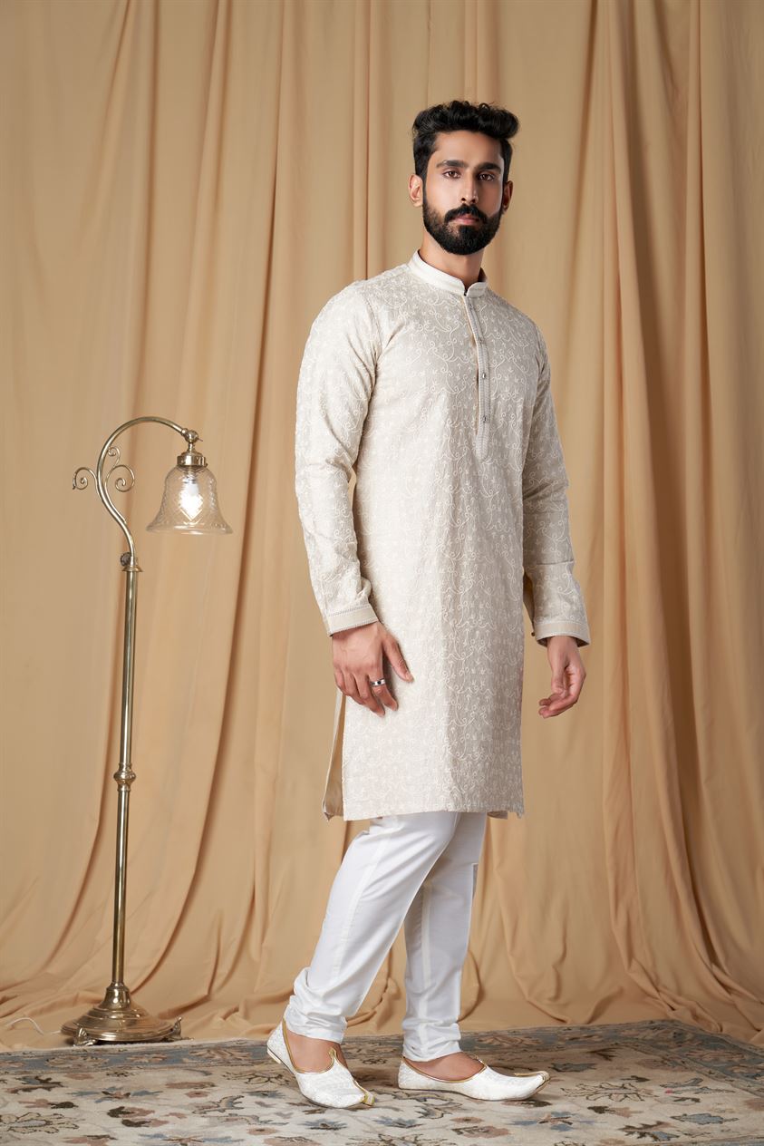Discover versatile style with this beige Matka silk kurta set, designed for the modern Indian man who loves to mix and match. Featuring delicate embroidery and a rich textured fabric, it pairs effortlessly with a variety of bottoms for a look that’s both rooted and fresh. Perfect for 16+ men, this Ekatva Ethnic piece offers timeless elegance with everyday adaptability
